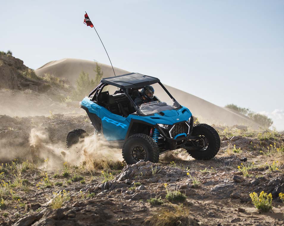 Escape the everyday with performance that unleashes limitless potential. RZR Pro S delivers nimble handling, rock-solid stability and unmatched agility to experience pure exhilaration on rugged, wide-open terrain.